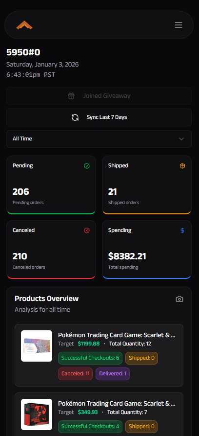 Track order confirmations, shipments, and cancelations from Target, Walmart, Costco, Pokemon Center, and Sam's Club.